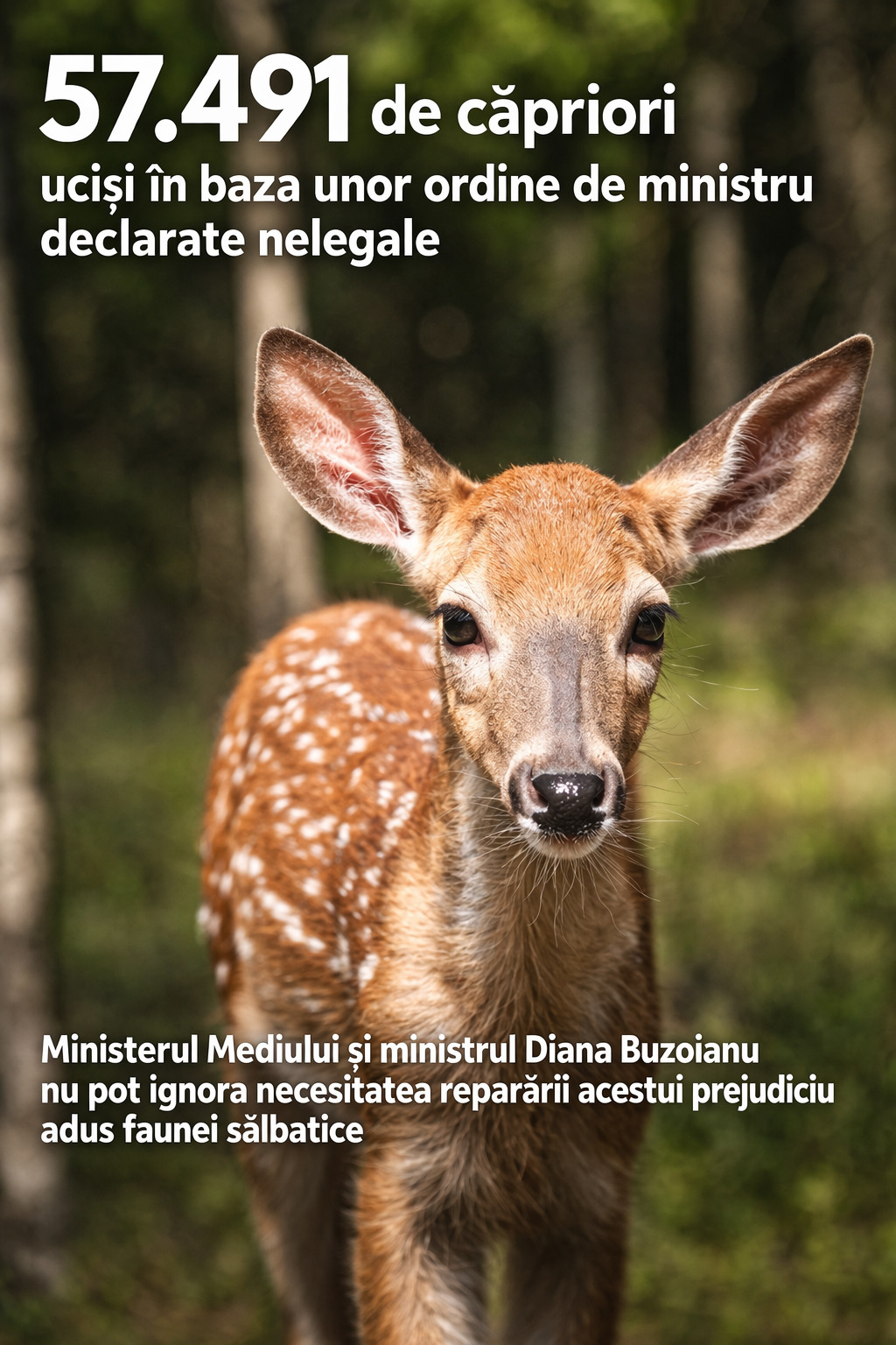 57.491 de căpriori uciși în baza unor ordine de ministru declarate nelegale de instanță,emise de Ministerul Mediului.